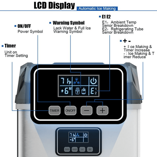 Countertop Ice Maker Machine – 48 lbs/Day, Stainless Steel, Self-Cleaning with LCD Display